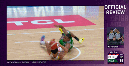 这球最终吹了高诗岩和对手5号的双方违体,各罚2次,但是球权却给到了沙特