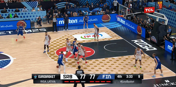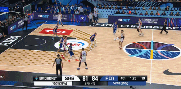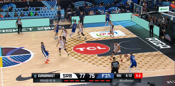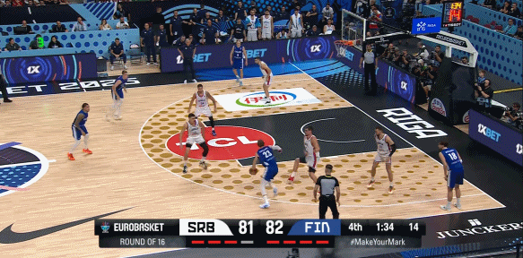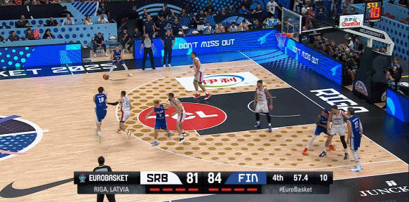 值得一提的是,本场比赛第四节,芬兰的小阵容疯狂针对约基奇,起到了奇效。