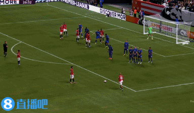 第27分钟,曼联右侧肋部位置的定位球机会,姆贝莫主罚直接打门被门将扑出↓