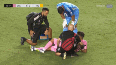 08月21日讯 联盟杯1/4决赛,迈阿密国际迎战老虎大学,上半场尾声阶段,阿尔巴被队友特拉斯科踩到脚踝,下半场坚持上场,但只踢了1分钟又倒地,最终伤退。